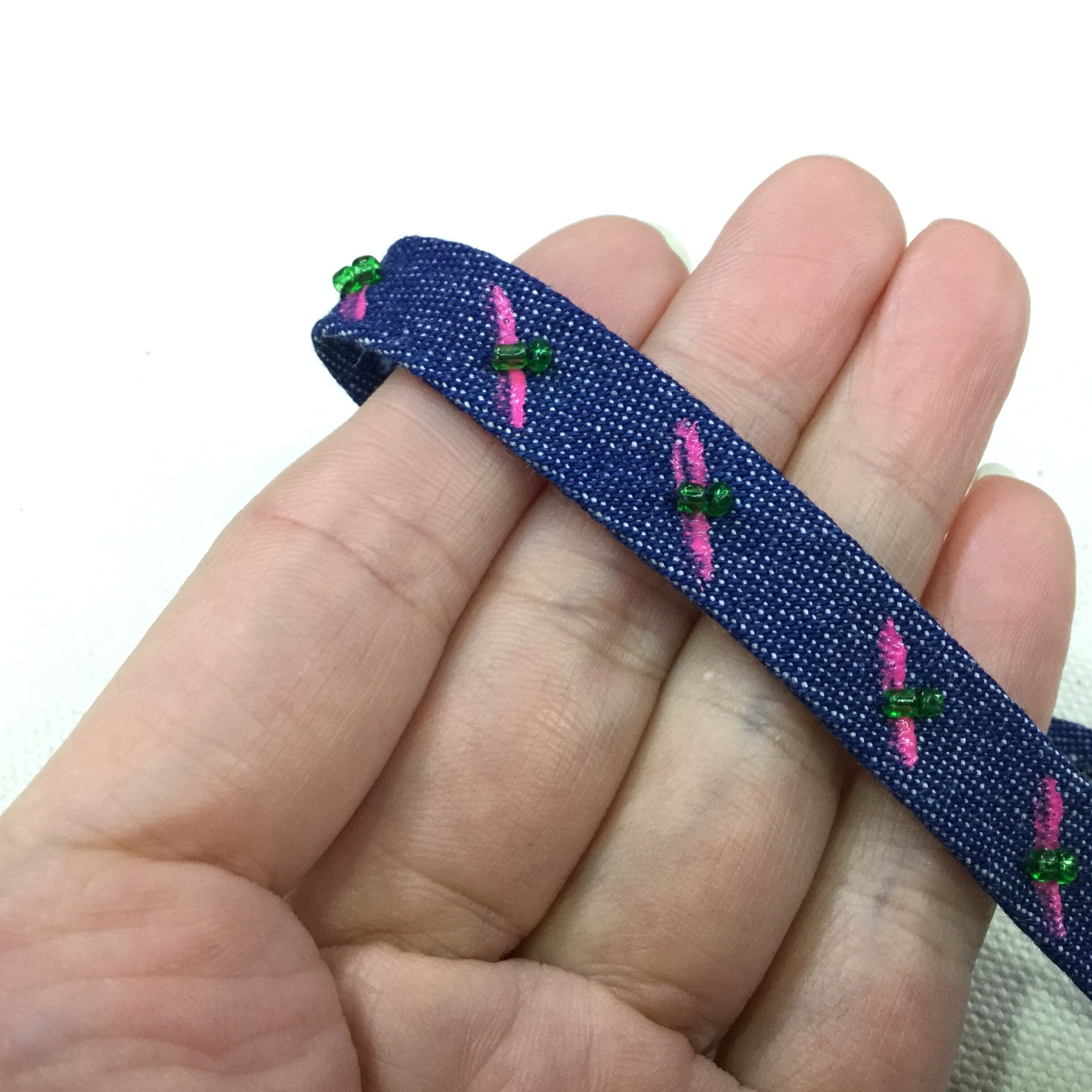 在庫限り No.2657-c/#0 ビーズ デニムテープ 1m