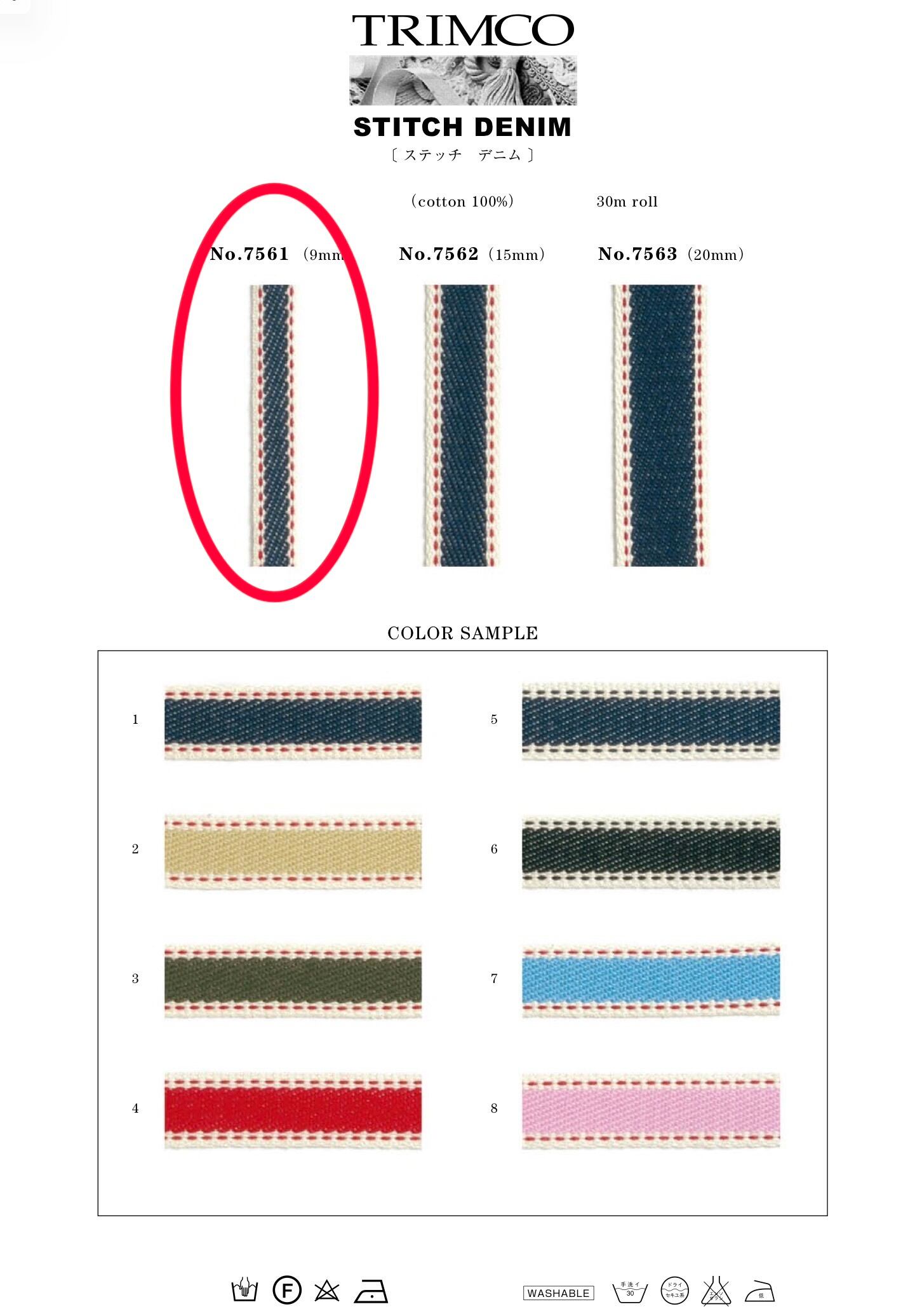 定番 No.7561 9mm ステッチデニムテープ 1m