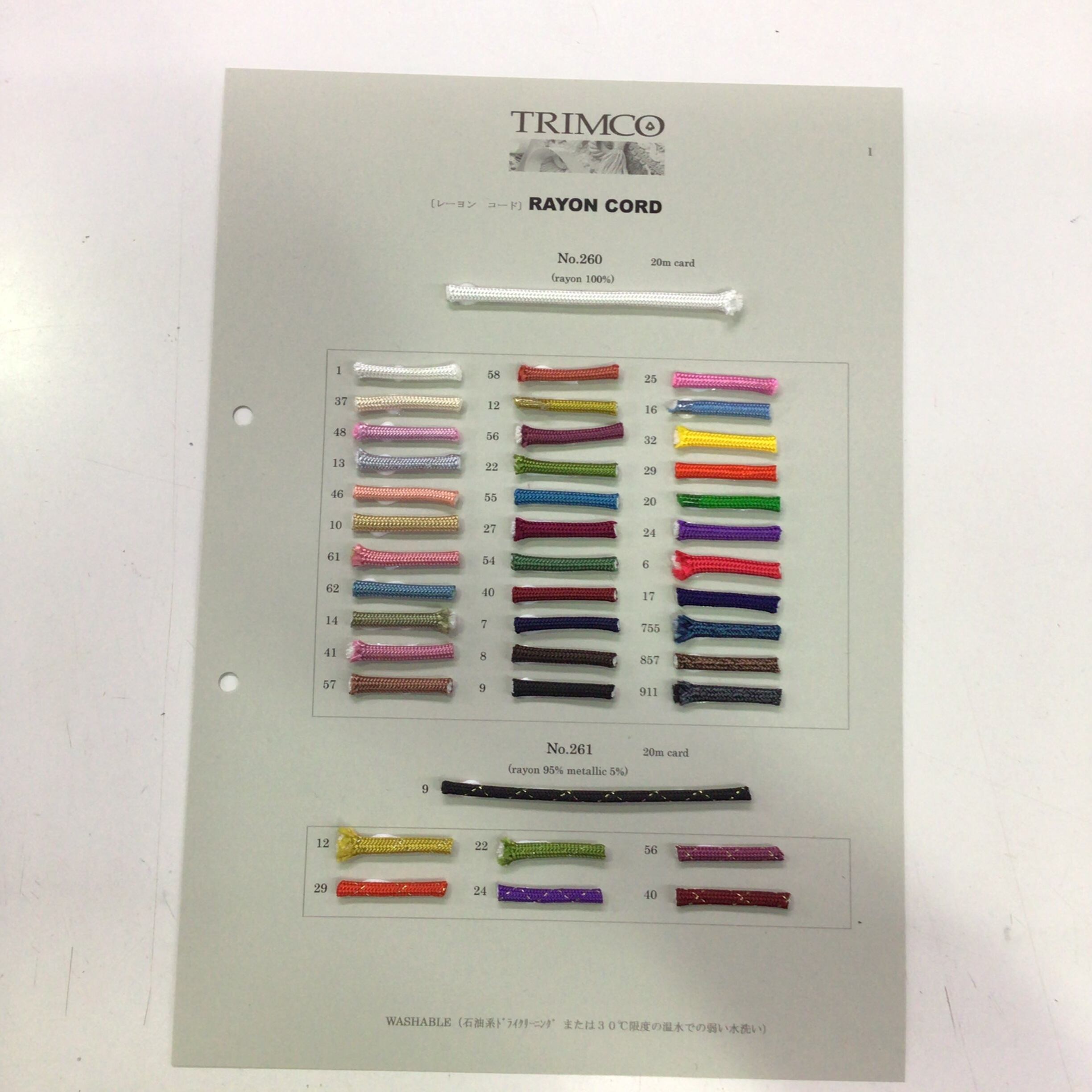 現物サンプル帳 No.260 レーヨンコード 1枚